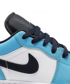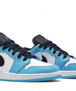 The Air Jordan 1 Low UNC (GS) sneakers by Jordan feature a sleek and stylish design, perfect for any sneaker enthusiast.