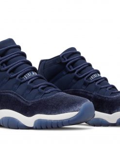 The Air Jordan 11 Velvet Midnight Navy sneakers for women by Jordan feature a sleek and stylish design. These sneakers combine a midnight navy velvet upper with patent leather accents and a translucent outsole. With their iconic silhouette and attention to detail, these sneakers are a must-have for any sneaker enthusiast. Stay on-trend and sport a classic look with the Air Jordan 11 Velvet Midnight Navy.