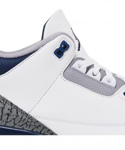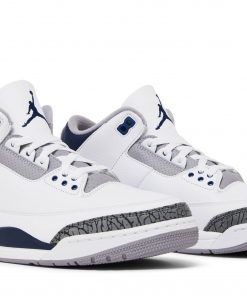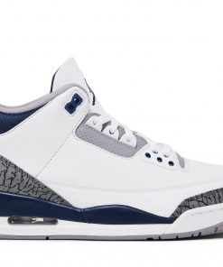 Step into iconic style with the Air Jordan 3 Retro ‘Midnight Navy’! These legendary sneakers boast a pristine white tumbled leather upper, complemented by rich obsidian accents on the elephant print overlays.