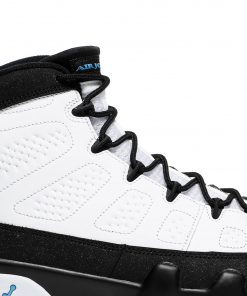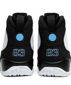Introducing the Air Jordan 9 Retro University Blue, also known as the University Blue, from the iconic Jordan brand. This sneaker features a sleek white colorway, making it perfect for any stylish outfit. Grab a pair of these retro kicks and stand out with the classic Jordan style.
