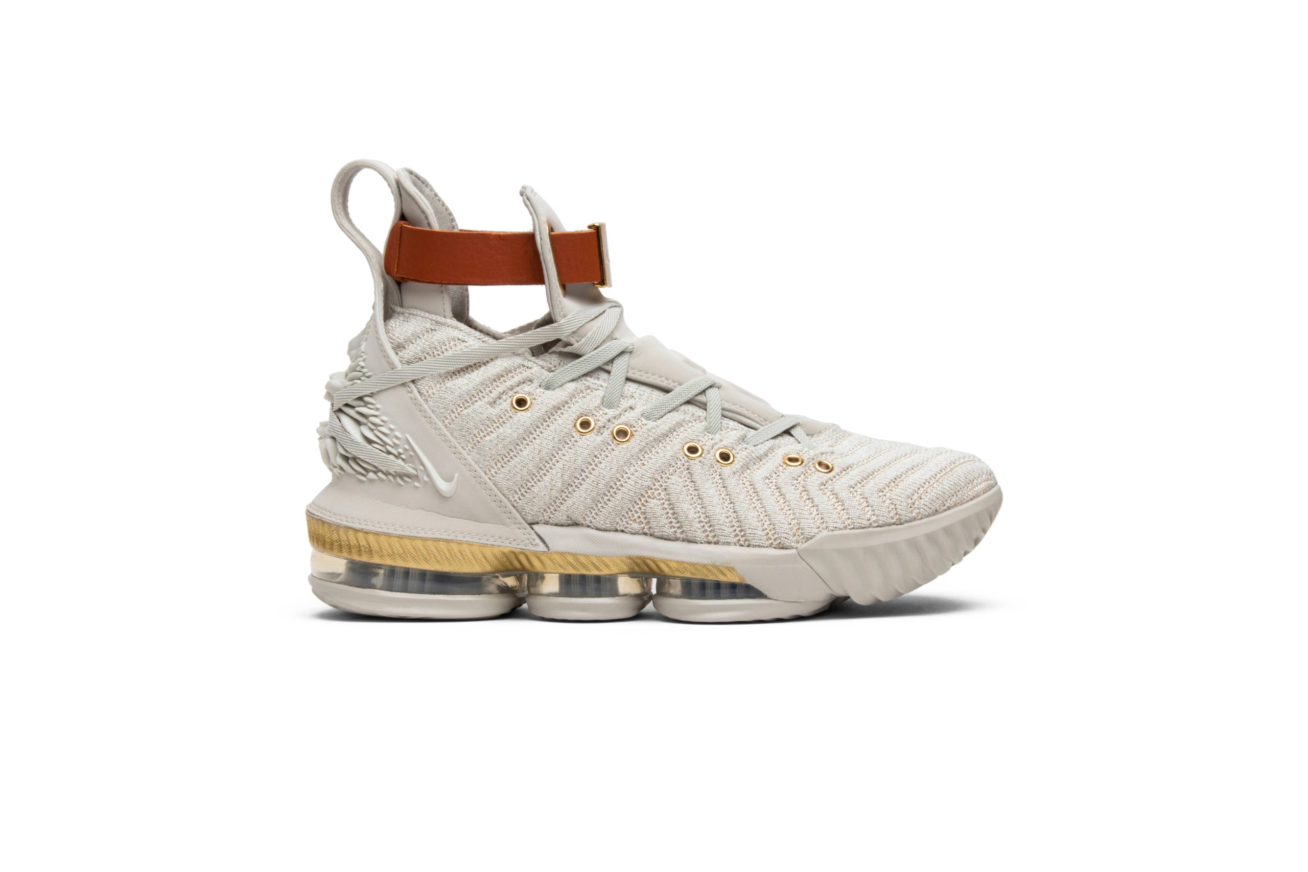 This stylish shoe features a clean white colorway and is designed with the signature LeBron 16 silhouette.