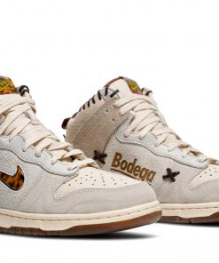 The Bodega x Nike Dunk High Friends & Family in beige is a highly sought after collaboration between Bodega and Nike.