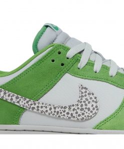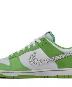 Introducing the Nike Dunk Low Safari Swoosh Chlorophyll sneakers. Designed by Nike, these sneakers feature a unique safari print and a bold chlorophyll swoosh. With their low-profile design and comfortable fit, these sneakers are perfect for everyday wear. Made with high-quality materials, they provide durability and style. Stand out from the crowd with the Nike Dunk Low Safari Swoosh Chlorophyll sneakers.