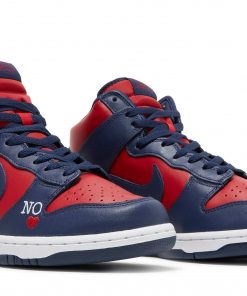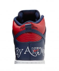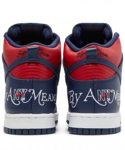 Introducing the Supreme x Nike SB Dunk High By Any Means Navy sneakers.