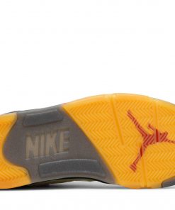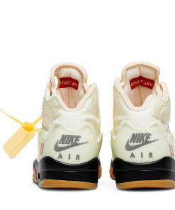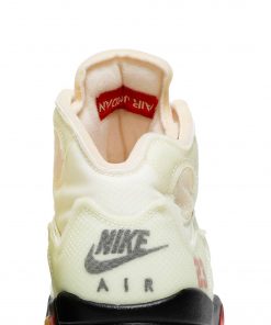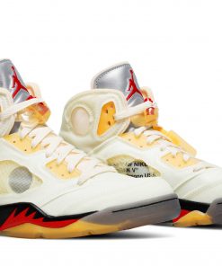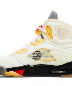 The Off-White x Air Jordan 5 SP Sail, also known as the Sail, is a collaboration between renowned brand Off-White and Jordan.