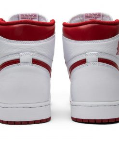 These iconic shoes feature a sleek white colorway with metallic red accents, giving them a unique and stylish look.